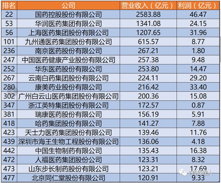 財(cái)富中國(guó)500強(qiáng),19家藥企營(yíng)收總額超8000億